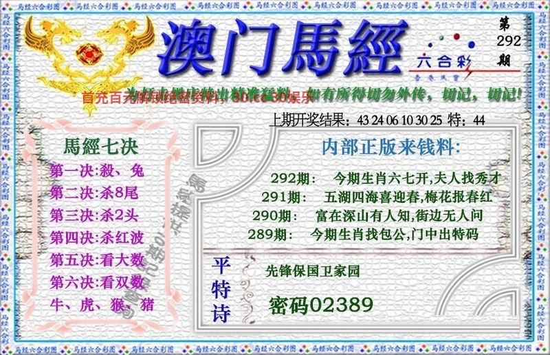 292期:七尾『0125789尾』开:龙02准