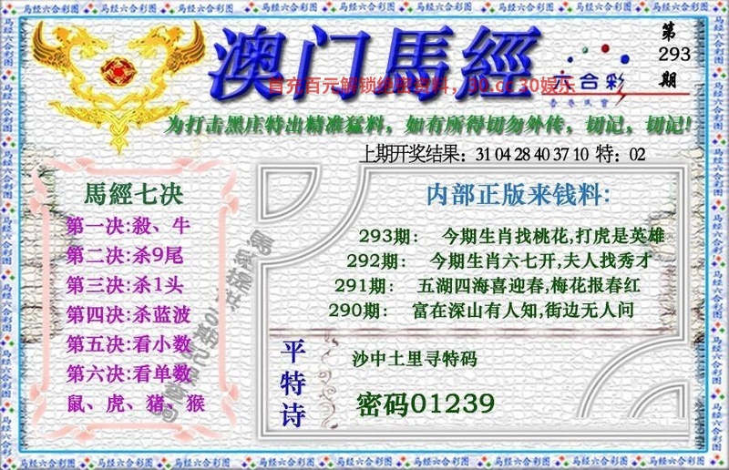 293期:阴肖阳肖阳肖开:羊47准